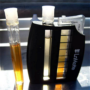 The tube on the left displays toxic ammonia levels. The tube to the right, after EWS treatment, demonstrates that the ammonia has been eliminated. |