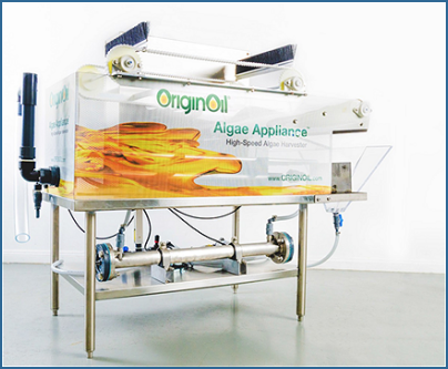 Based on OriginOil’s proprietary Electro Water Separation (EWS) technology, EWS Algae A12 (“the Algae Appliance”), is an entry-level, low-cost algae harvester providing a low energy, chemical-free, continuous flow ‘wet harvest’ system to efficiently dewater, and concentrate the microalgae. The A12’s flow rate is variable from 2 to 12 litres per minute (.5 to 3 GPM), with the ability to remove greater than 99% of the initial water volume at the harvesting stage.